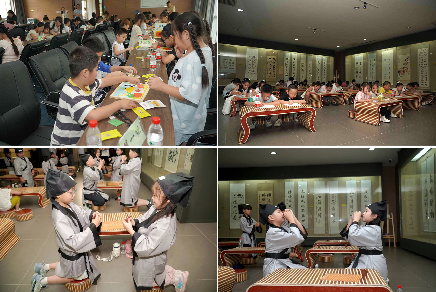 實(shí)踐點(diǎn)燃創(chuàng)造火花。在多媒體廳,孩子們巧手拼貼五谷雜糧,創(chuàng)作寓意深遠(yuǎn)的糧畫作品,于指尖再次感悟“粒粒皆辛苦”。字畫廳則化作文雅殿堂,孩子們?cè)趯?dǎo)師引領(lǐng)下,研習(xí)傳統(tǒng)酒禮中的賓主之道、長(zhǎng)幼之序與君子之風(fēng),舉手投足間傳承著文明的儀軌。