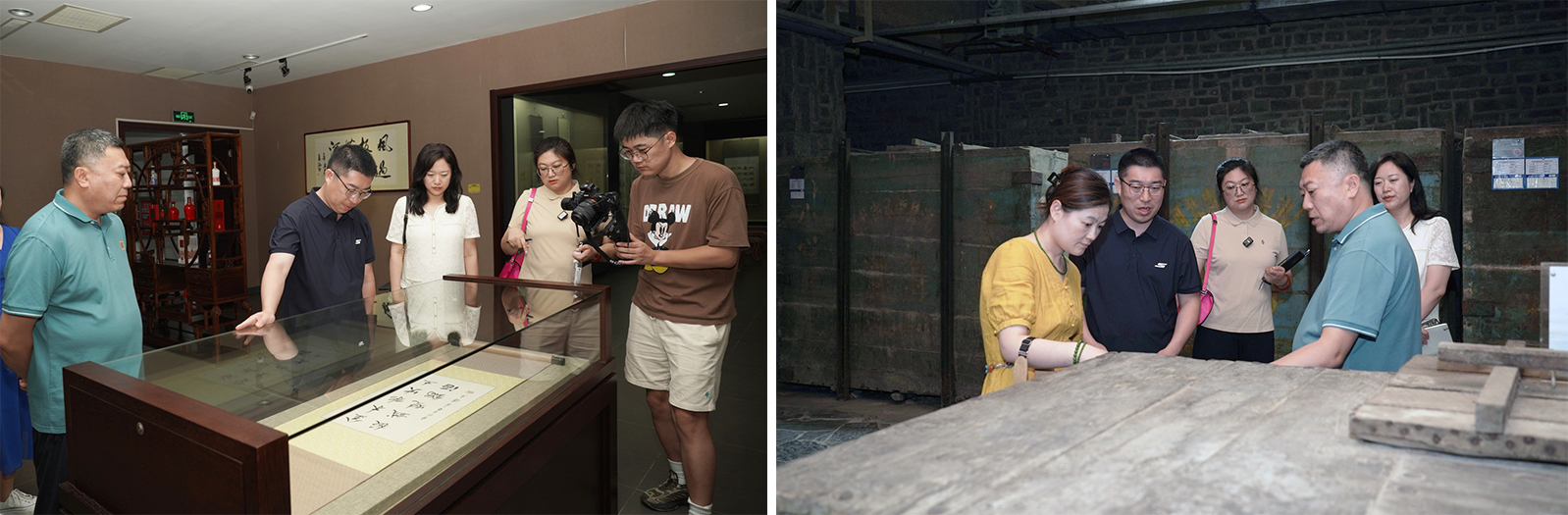 交流后,在板城酒業(yè)相關人員的帶領下,魏斌副總經(jīng)理一行深入探訪板城酒業(yè)廠區(qū),駐足于飄散著歲月醇香的傳統(tǒng)釀造車間,沉浸式感受國家級非遺“老五甑”釀造技藝的獨特魅力;步入恒溫恒濕的陶壇酒庫,體會時光賦予美酒的厚重沉淀;更在智能化灌裝車間,見證了傳統(tǒng)匠心與現(xiàn)代科技的完美相融,通過板城燒鍋酒博物館領略板城酒業(yè)300多年的釀酒歷史與文化。
