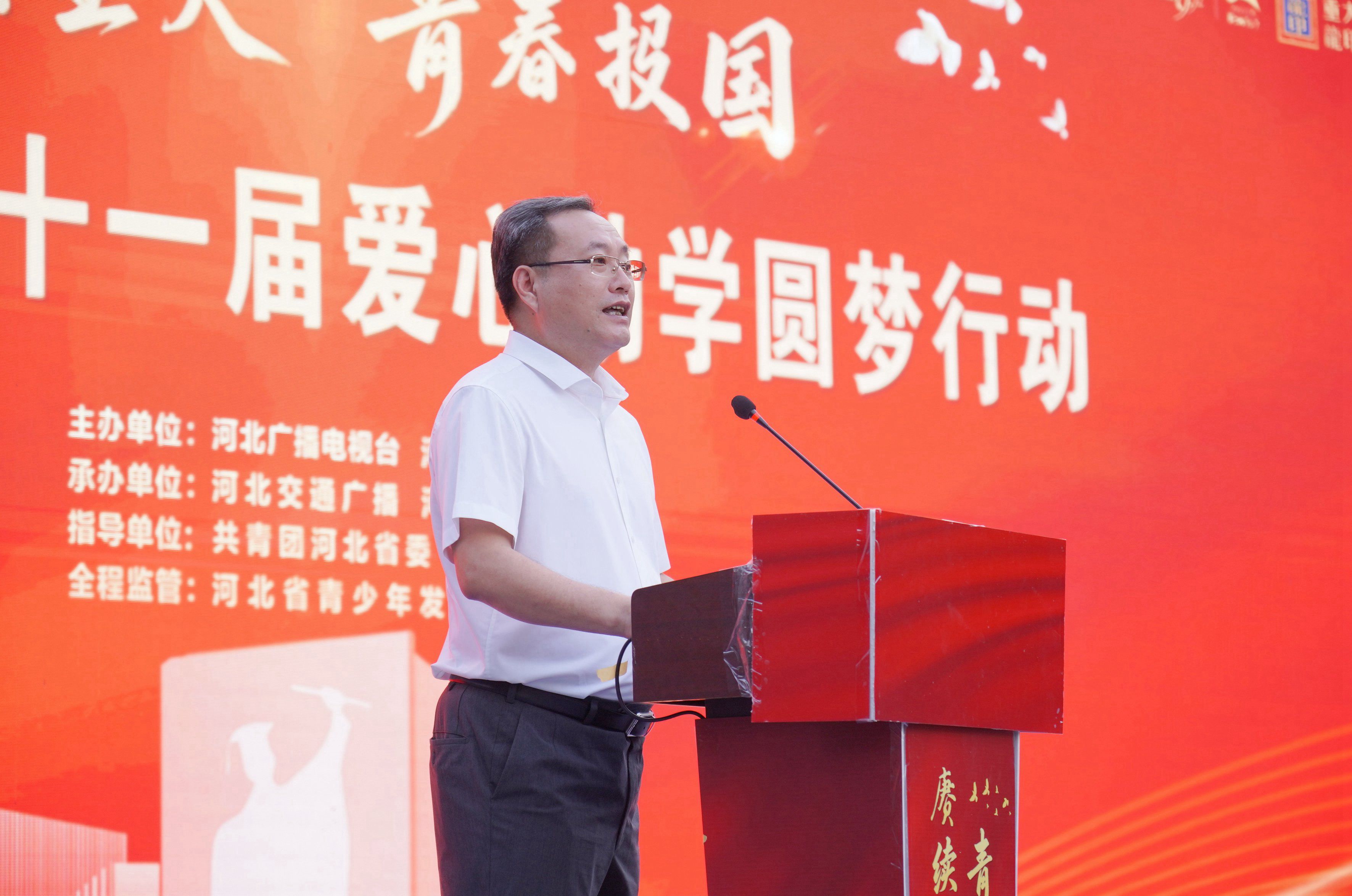 河北廣播電視臺(tái)副總編輯邊宇峰致辭,邊宇峰講到:“作為主流媒體、責(zé)任擔(dān)當(dāng),河北廣播電視臺(tái)始終與時(shí)代同行,與人民同向。值此抗戰(zhàn)勝利八十周年,我們賦予本屆活動(dòng)深沉的主題——‘賡續(xù)星火青春報(bào)國’這不僅是一次助學(xué)行動(dòng),更旨在為學(xué)子注入時(shí)代精神與國際視野,將個(gè)人理想熔鑄于民族復(fù)興的壯闊征程。讓我們攜手并肩,讓助學(xué)‘星火’代代相傳,照亮青春夢(mèng)想,共繪時(shí)代華章!”