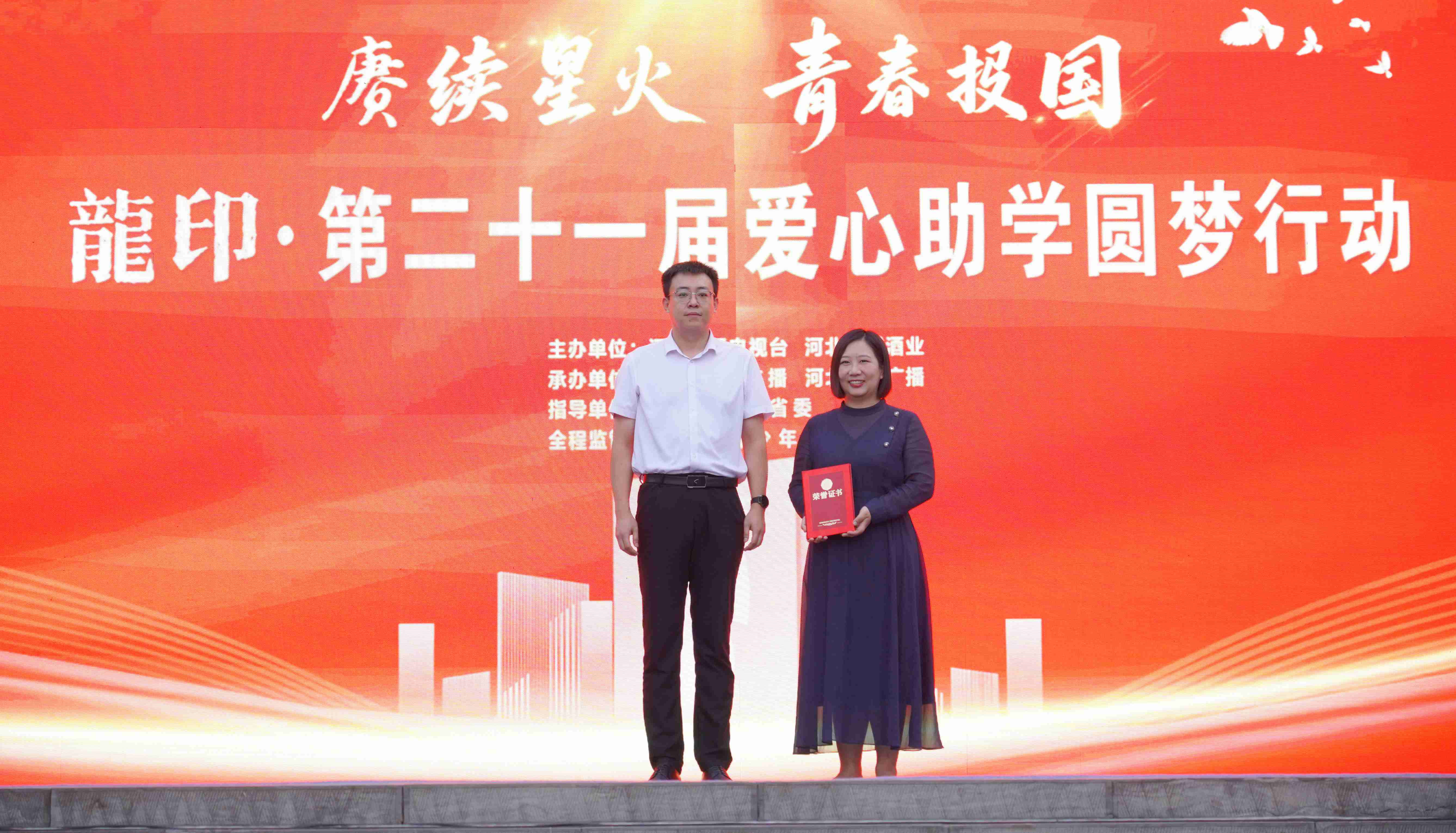 現(xiàn)場(chǎng)由河北省青少年發(fā)展基金會(huì)理事長、省希望辦主任、一級(jí)調(diào)研員劉景為愛心人士代表頒發(fā)證書。