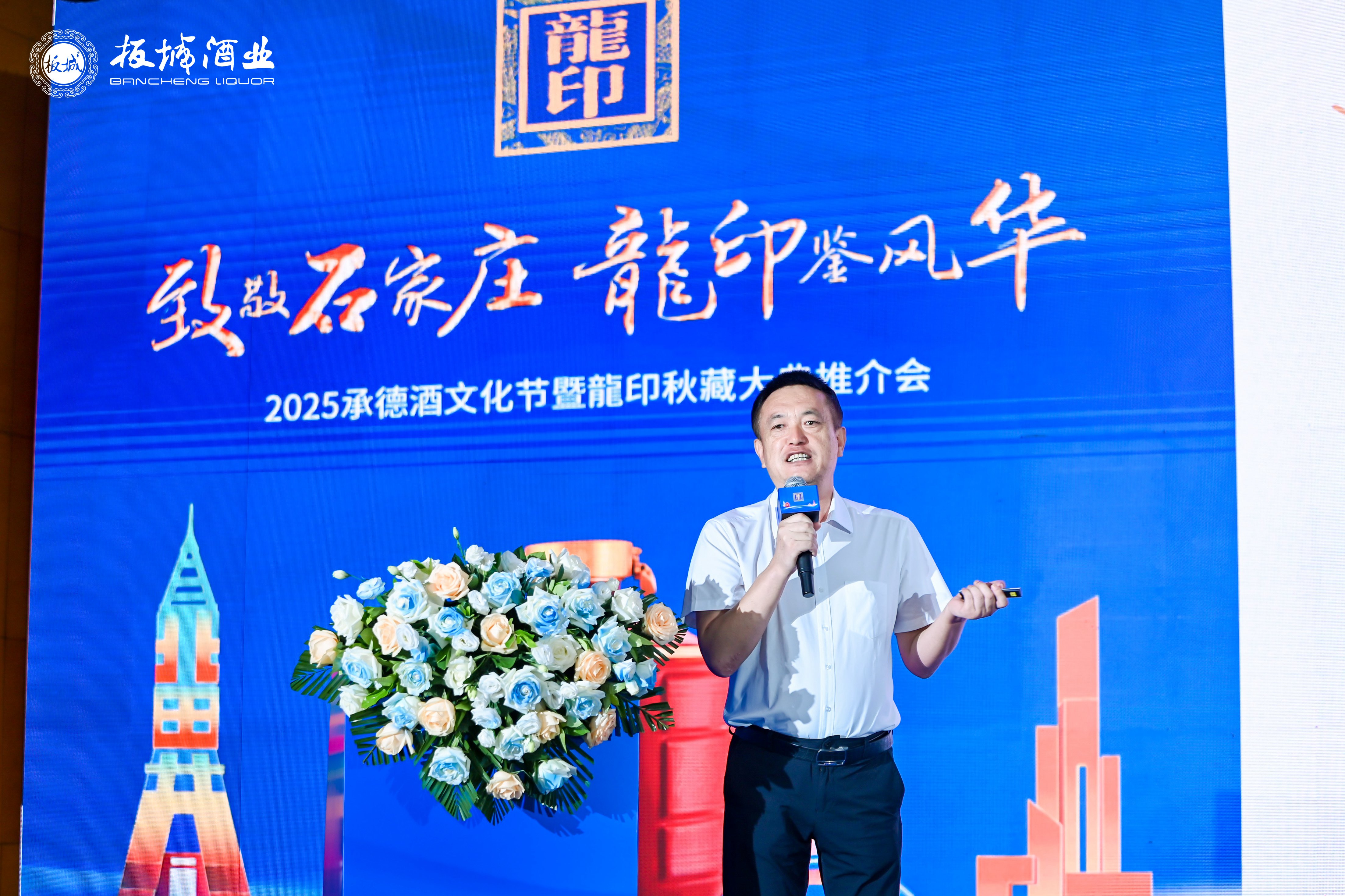 歐式長(zhǎng)桌宴+中式待客禮,板城酒業(yè)石家莊戰(zhàn)區(qū)龍印部銷(xiāo)售總監(jiān)孫坤申與石家莊龍印部業(yè)務(wù)經(jīng)理共同登臺(tái)祝酒。