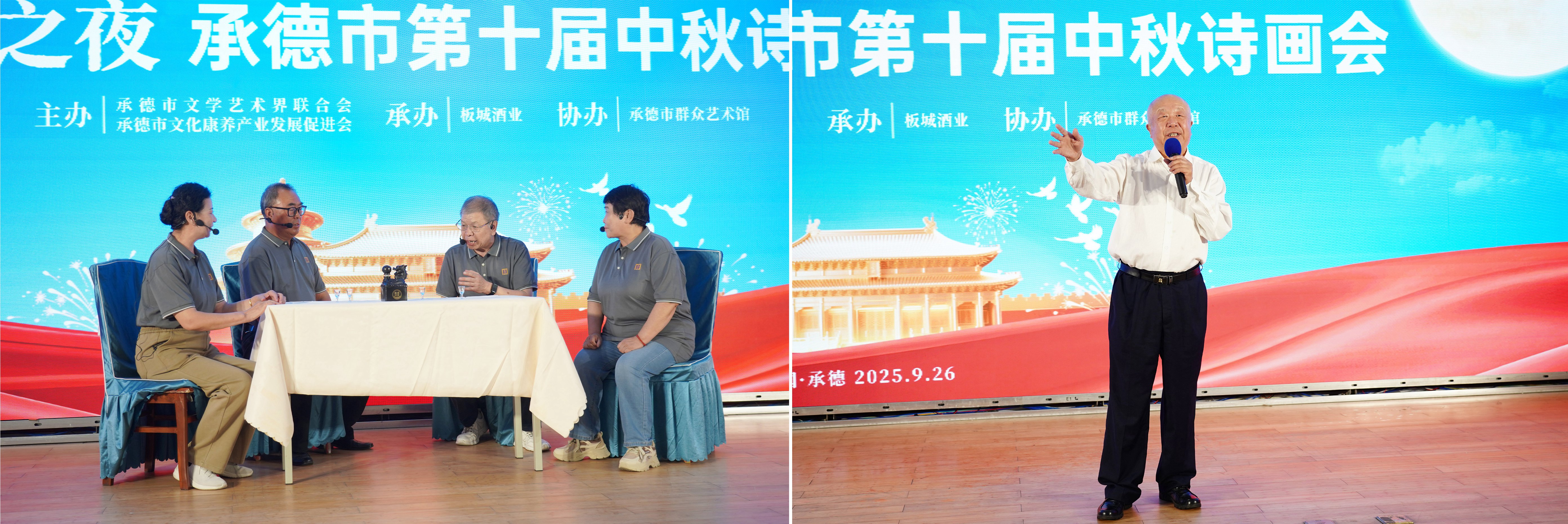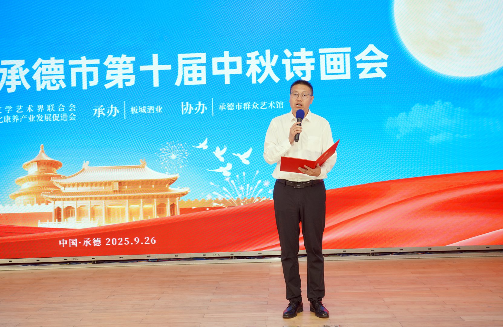 9月26日晚,由承德市文學(xué)藝術(shù)界聯(lián)合會(huì)、承德市文化康養(yǎng)產(chǎn)業(yè)發(fā)展促進(jìn)會(huì)主辦;板城酒業(yè)承辦;承德市群眾藝術(shù)館協(xié)辦的“龍印之夜——承德市第十屆中秋詩(shī)畫(huà)會(huì)”在板城酒業(yè)隆重舉行。