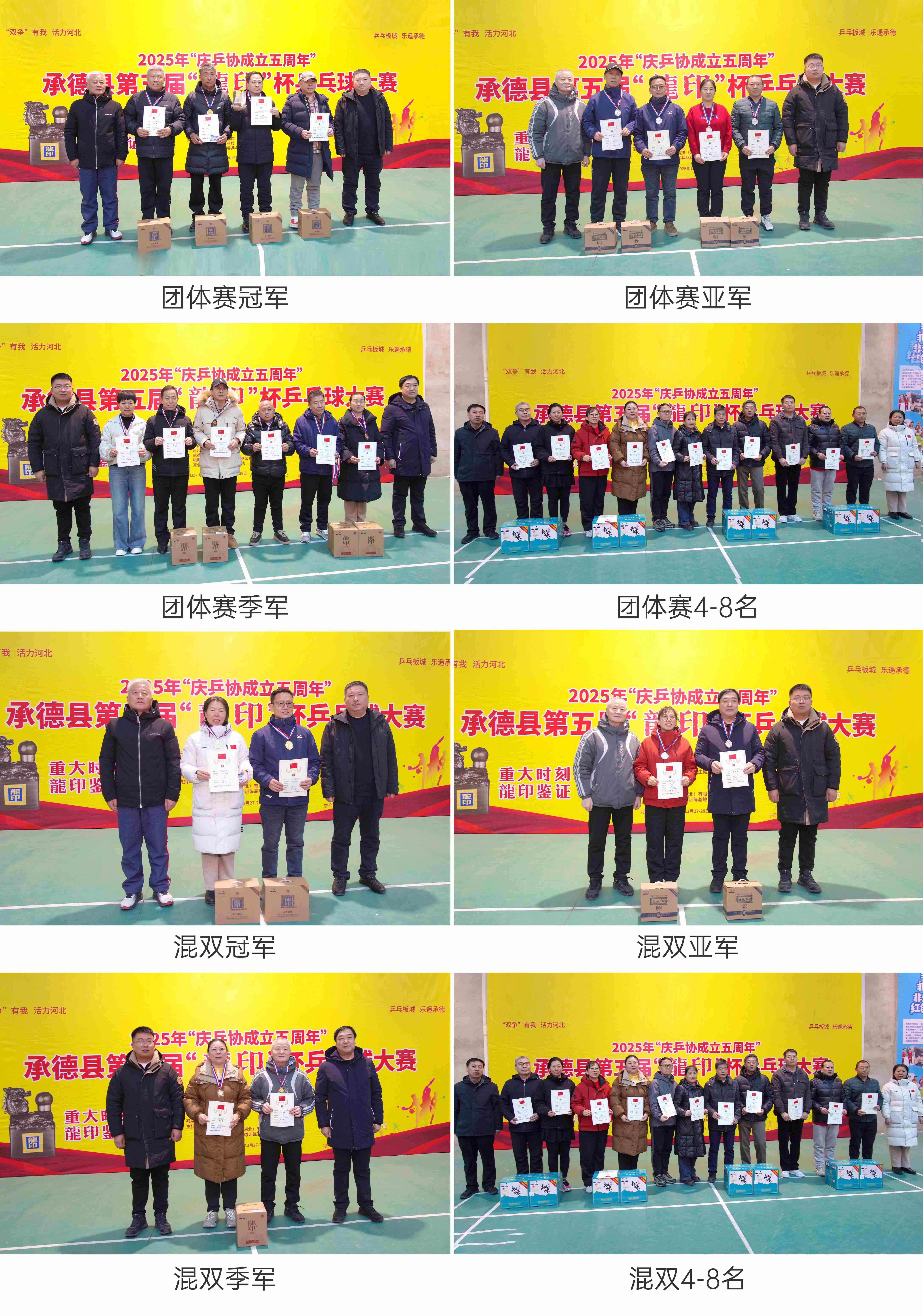 12月27日至28日,2025年“慶乒協(xié)成立五周年”承德縣第五屆“龍印杯”乒乓球大賽圓滿(mǎn)落幕。本次賽事由承德縣教育和體育局、承德縣旅游和文化廣電局聯(lián)合主辦;承德縣體育總會(huì)、承德縣乒乓球運(yùn)動(dòng)協(xié)會(huì)承辦;承德縣民政局、承德縣衛(wèi)生健康局、承德縣融媒體中心協(xié)辦;板城酒業(yè)連續(xù)五屆獨(dú)家冠名支持。