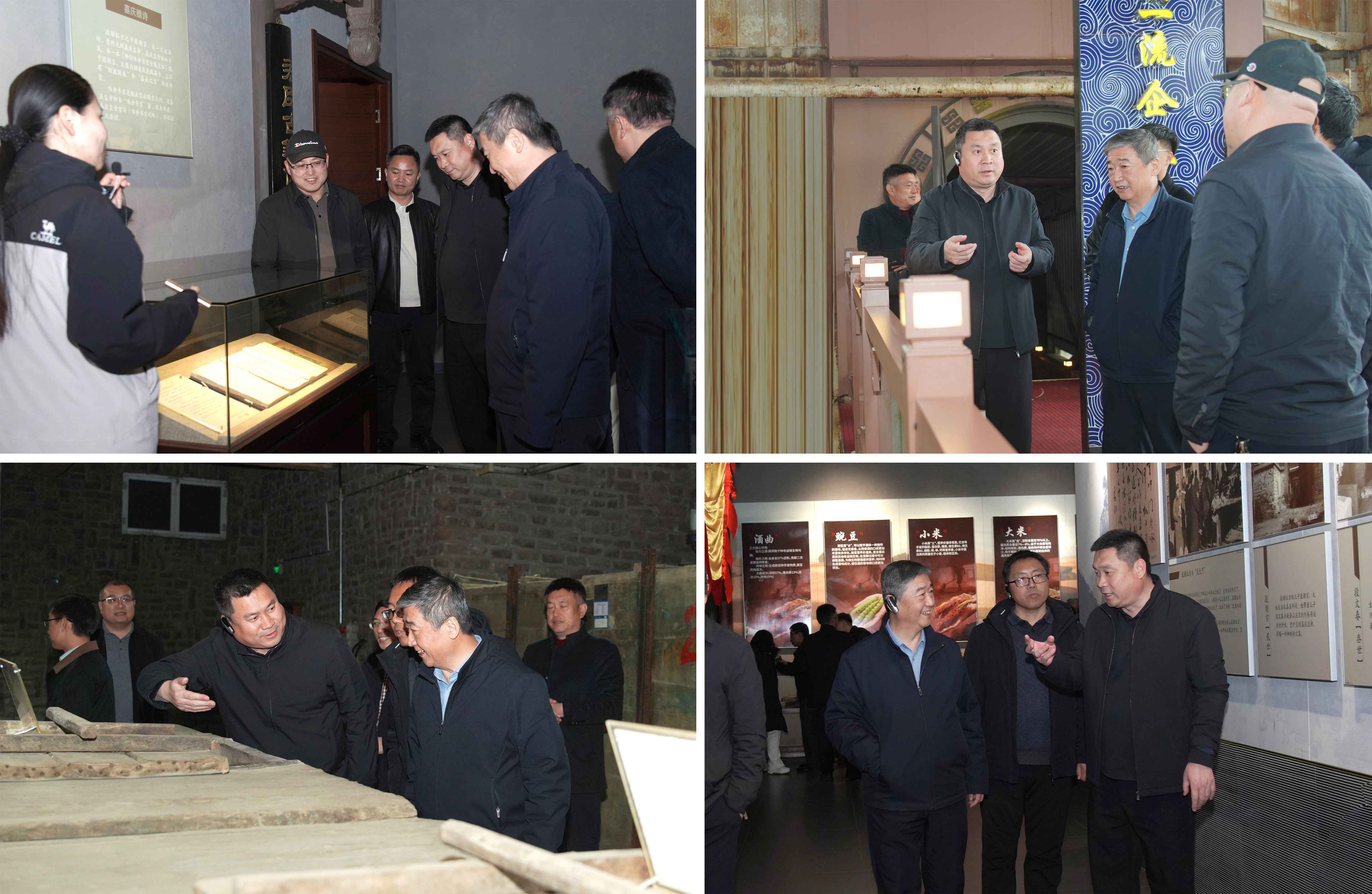在賀延昭總經(jīng)理的陪同下,孫政書記一行實地走訪了釀酒車間、乾元酒窖、板城燒鍋酒博物館。